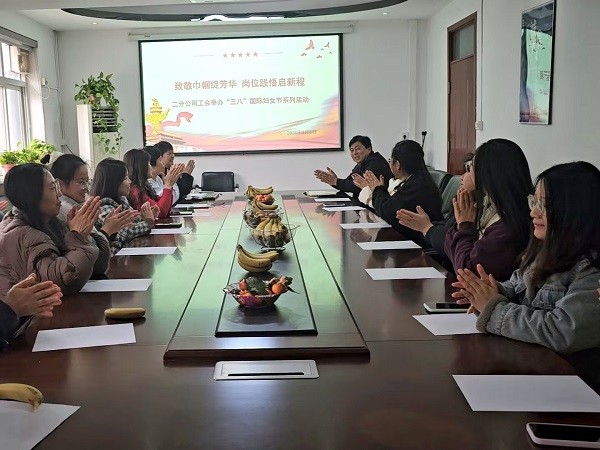 春和景明,暖意盎然。为迎接第116个国际劳动妇女节,3月5日,二分公司工会在四楼会议室精心策划开展了“致敬巾帼绽芳华,奋进岗位建新功”主题活动,组织学习劳模精神、观看励志影片,围绕岗位攻坚、提质增效展开讨论,引导女职工以先进为榜样,立足岗位担当作为。分公司机关及石家庄片区项目部共计20余名女职工参加活动。