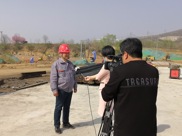4月8日,石家庄市矿区广播电视台采访组到九分公司井陉矿区重点工程冶金新材料装备产业园EPC项目施工现场进行采访。